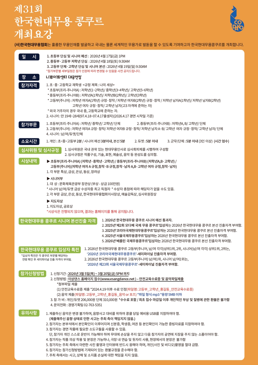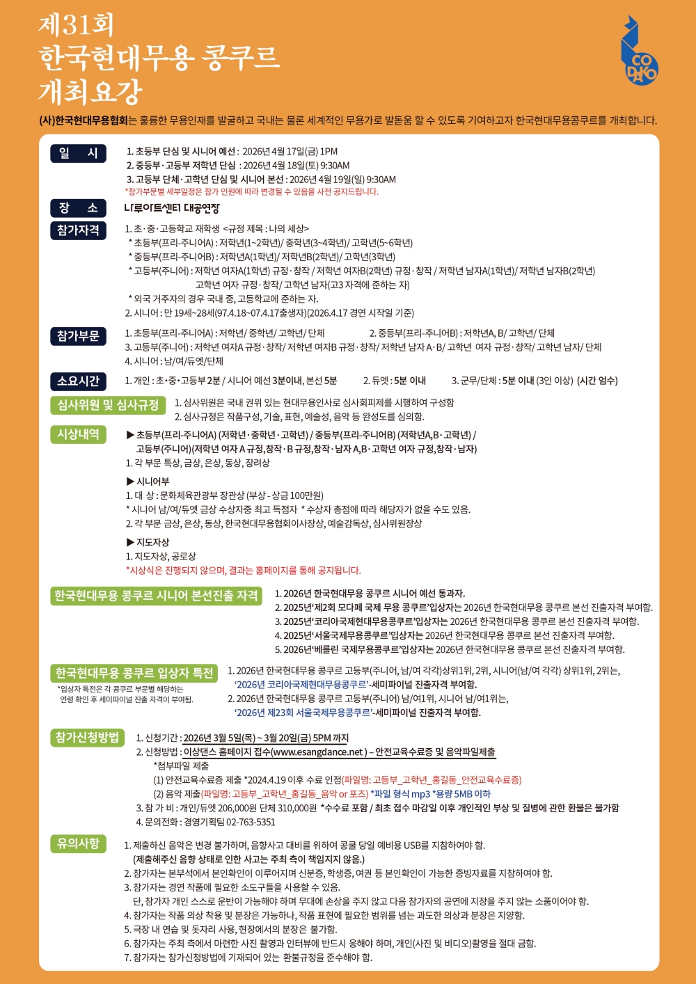 #한국현대무용콩쿠르 #한국현대무용협회 #한국현대무용콩쿨 #한국현대무용경연대회 #2026한국현대무용콩쿠르 #제31회한국현대무용콩쿠르 #2026한국현대무용콩쿨