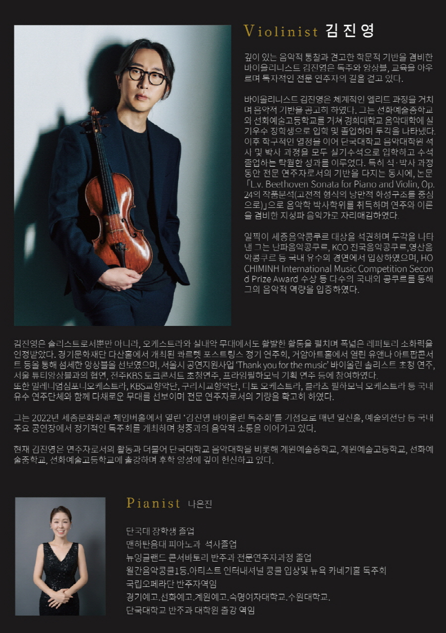 바이올린 독주회(김진영 바이올리니스트)2025.12.09(화)19:30 인춘아트홀