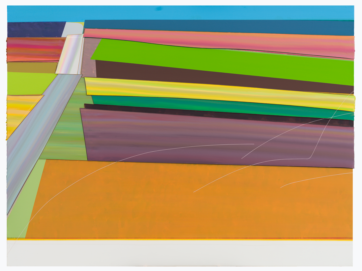 작품에 반복적으로 등장하는 수평적 구성, 완만한 곡선, 그리고 때로는 단절된 경계들은 전통적인 풍경화가 전제해 온 안정된 시점을 해체한다. 윤종석의 화면은 단일한 원근법적 공간이 아니라, 서로 다른 시점과 감각의 단편들이 공존하는 열린 장으로 기능한다. 이는 고정되지 않고 이동하며 세계와 얽히는 시선을 회화적으로 드러낸다.