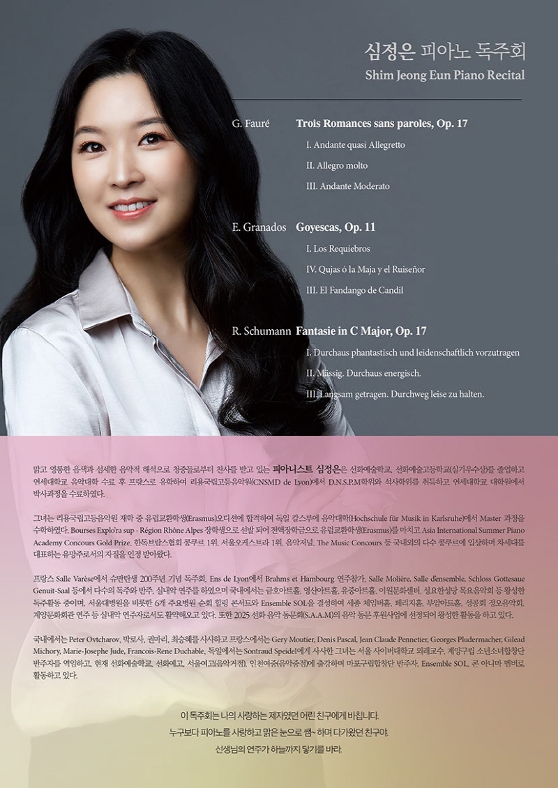 심정은 피아노 독주회(리사이틀)2025.8.16Sat.2:00pm