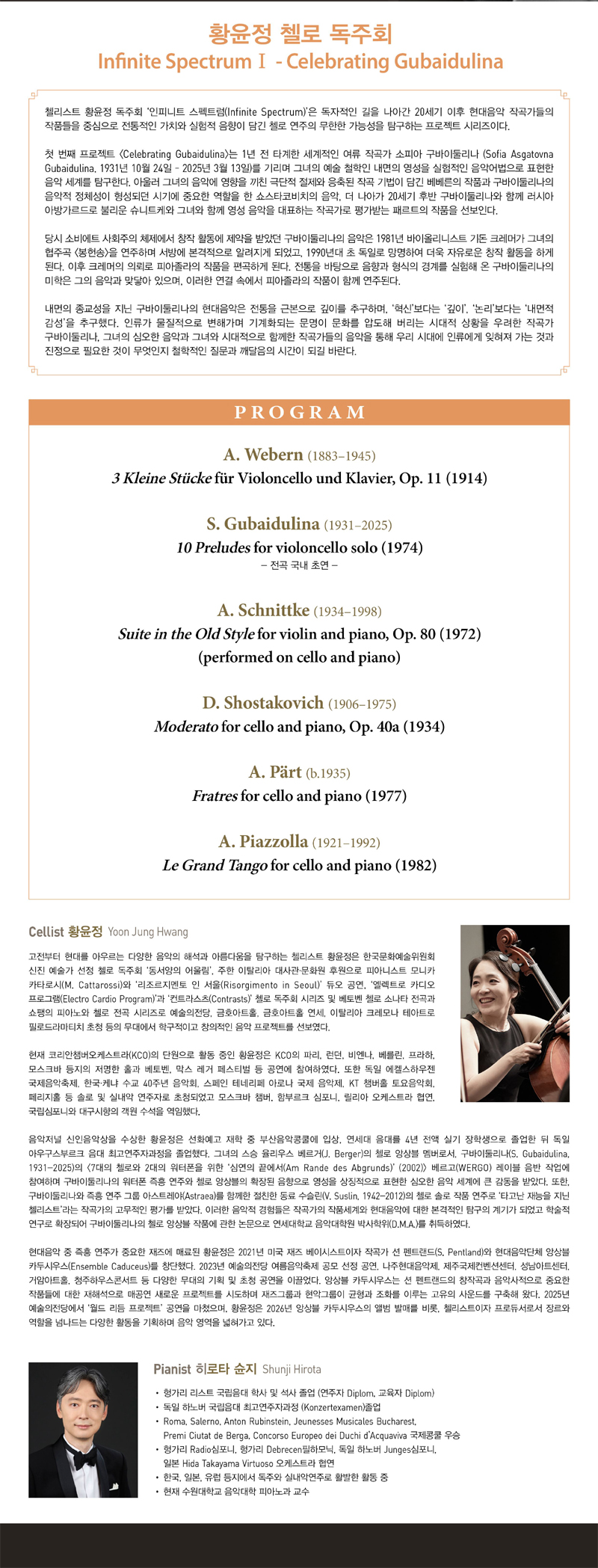 S. Gubaidulina ... 10 Preludes for violoncello Solo (1974) -전곡 국내 초연 -