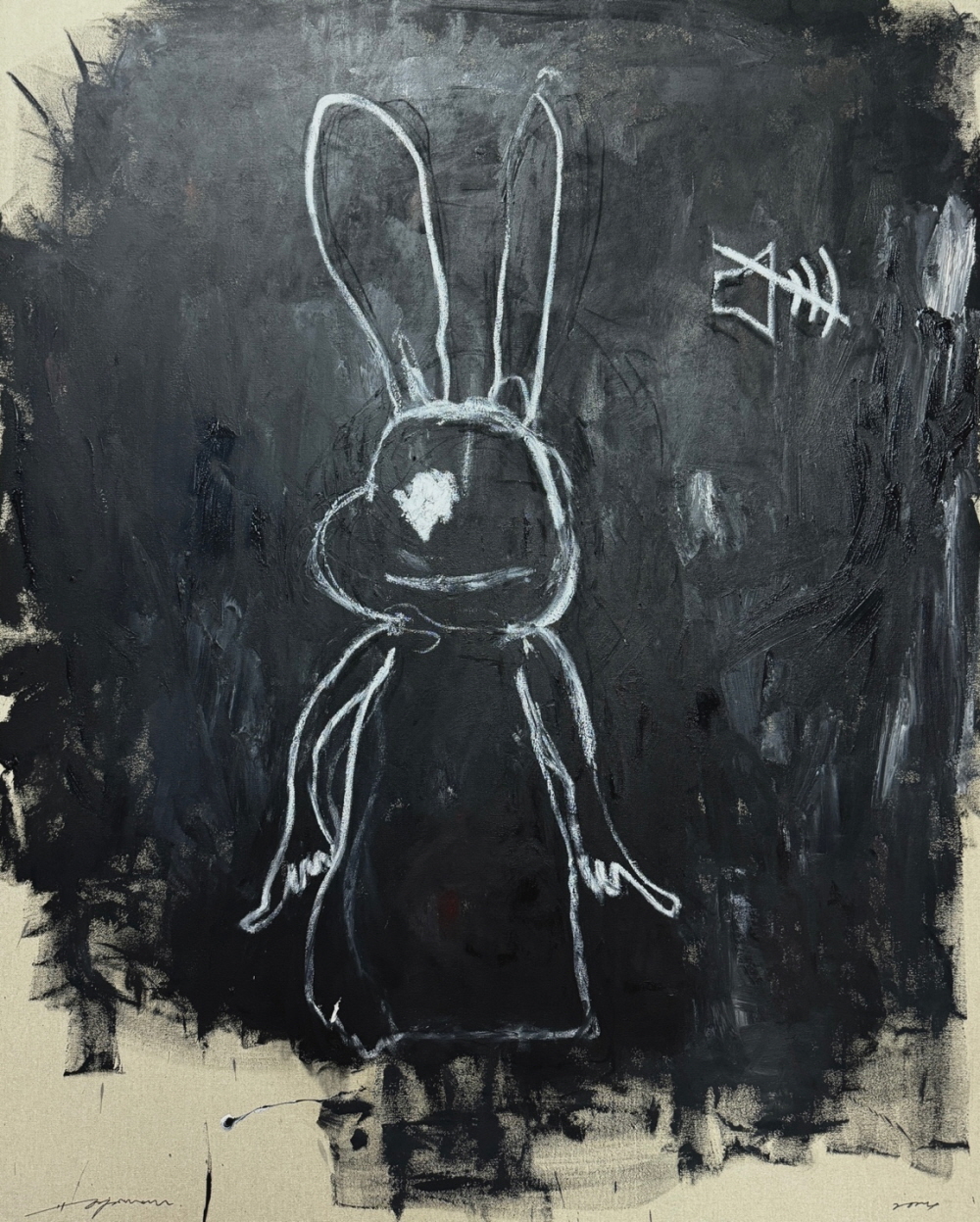 하지원 작가는 페르소나(Persona) 시리즈를 통해, 배우로서 경험한 ‘가짜 삶’과 캐릭터적 삶 을 시각화합니다. 디즈니 캐릭터, 미키마우스, 신데렐라 등 가상의 인물에서 영감을 얻어, 본인과 다른 타인의 시선으로 살아온 자신을 표현합니다. 《토킹 레빗》 캐릭터는 하지원 작가 자신을 상징하며, 작품 속 말풍선은 작가의 메시지를 직접 전달하는 역할을 합니다. 이러한 캐릭터 작업은 여배우로서의 경험과 여성으로서의 존재를 연결하며, 본인의 목소리를 시각적으로 구현하는 과정입니다