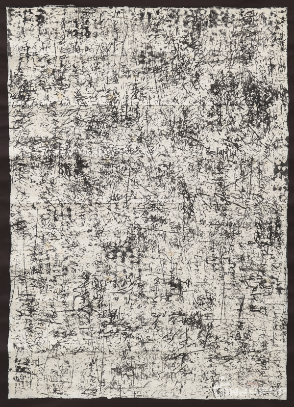 그의 화면은 낙서 같으면서도 필사처럼 느껴지는 자유로운 드로잉으로 채워져 있다. 읽을 수 없는 문자 형태의 끄적임과 독백적 언어가 반복적으로 중첩되며, 마치 작가의 사유가 종이 위에 직접 스며든 듯한 인상을 준다. 전통 동양화의 여백과 먹빛의 깊이를 토대로 현대적 감각을 결합한 그의 작업은 ‘보이지 않는 사유의 시각화’를 시도하고 있다.