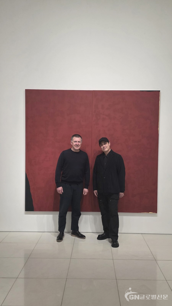 ▣사진-[출처 -(아트인뱅크)-전시장 2층] 좌측 김덕한, 우측 토마스 엘러