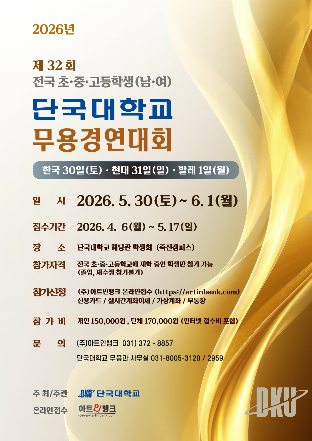 2026 제32회 단국대학교 전국 초·중·고등학생(남·여) 무용 경연대회